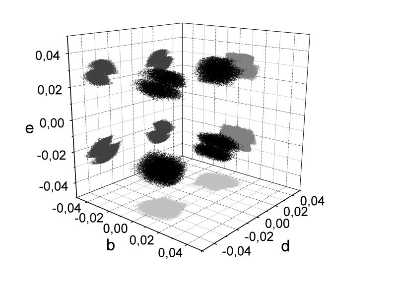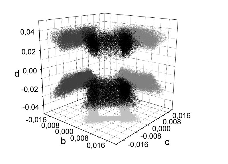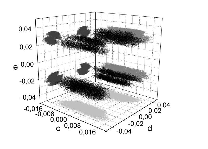 Frequency spectrum for parameters of neutrino mass matrix (texture A)