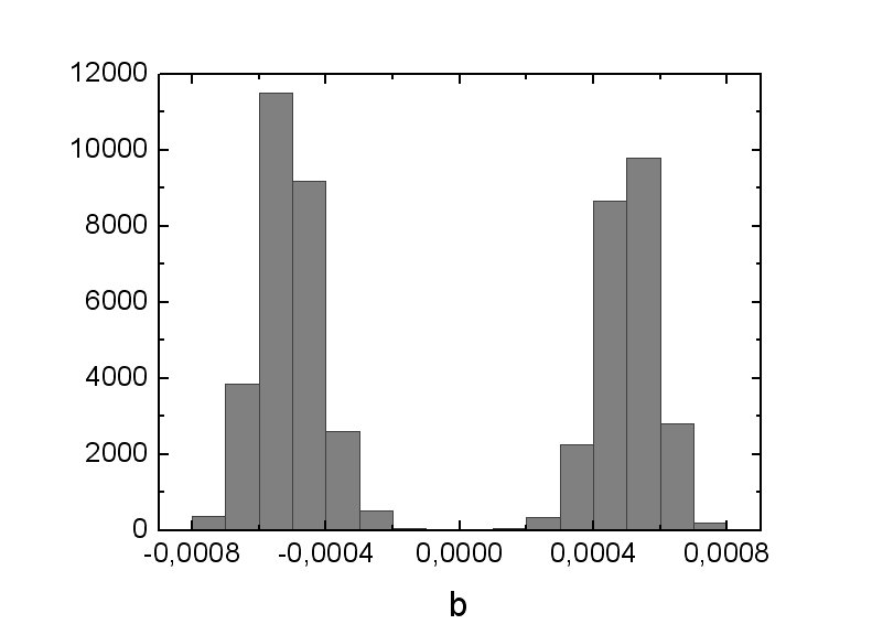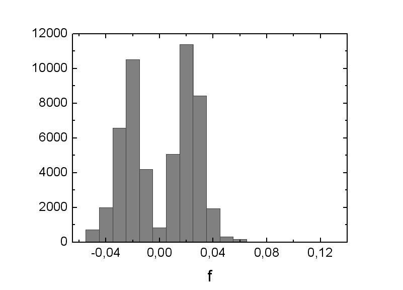 Frequency spectrum for parameters of neutrino mass matrix (normal mass hierarchy)