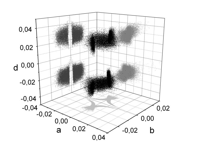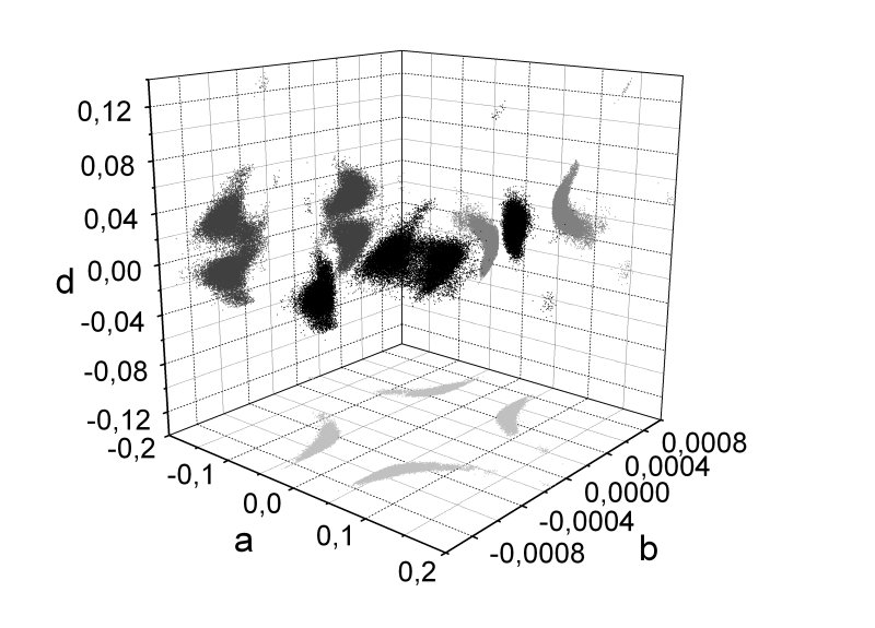 Frequency spectrum for parameters of neutrino mass matrix (inverted mass hierarchy)