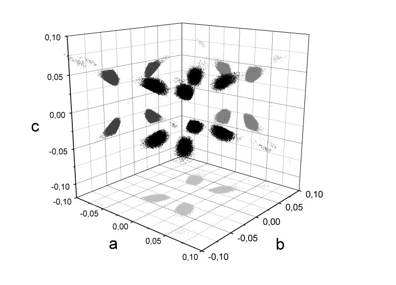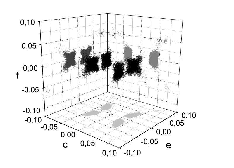 Frequency spectrum for parameters of neutrino mass matrix (normal mass hierarchy)